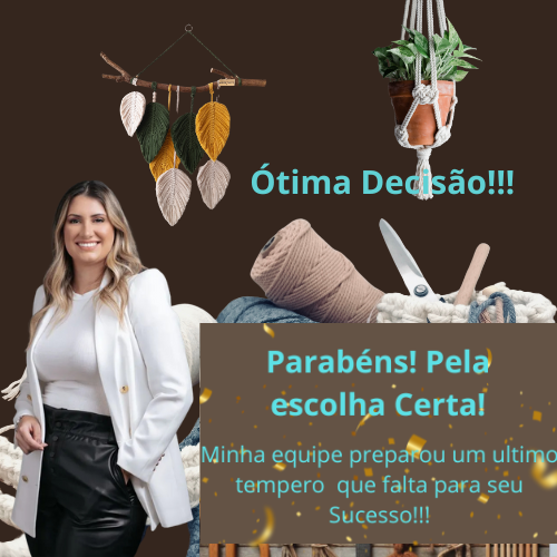 Você está muito mais próxima de conseguir sua liberdade financeira que você almeja e aprender tudo sobre macrame de forma muito mais efetiva!